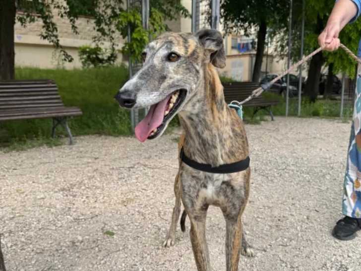 Nous mettons disponible à l'adoption Siria, une chienne Lévrier Espagnol au pelage bringé de six ans. Sociable avec tous, elle aura besoin d'un jardin pour s'épanouir.