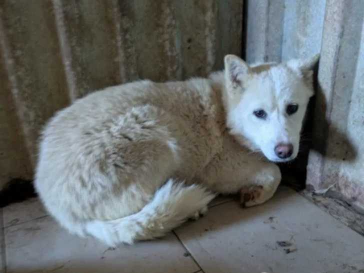 Nous vous présentons Célestia, une jeune chienne au pelage blanc de neuf mois en attente d'un foyer bienveillant. Elle s’entend bien avec ses congénères.