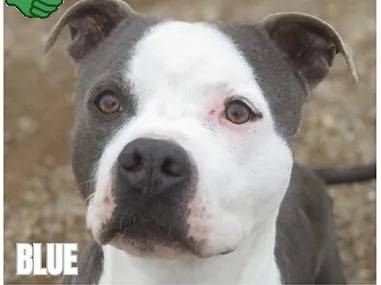 Nous vous offrons l'opportunité d’adopter ce chien Dogue gris et blanc de cinq ans appelé Blue. Il est à la recherche d’une famille aimante qui lui offrira une vie heureuse.