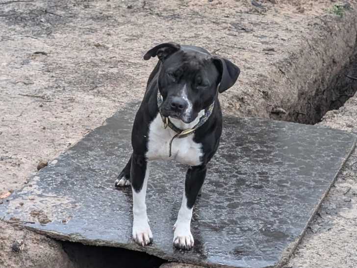 C’est avec plaisir que nous vous proposons à l'adoption cette chienne Staffordshire Américain Terrier au pelage bleu et blanc de cinq ans nommée Chanel. Non compatible avec ses congénères femelles, elle attend...
