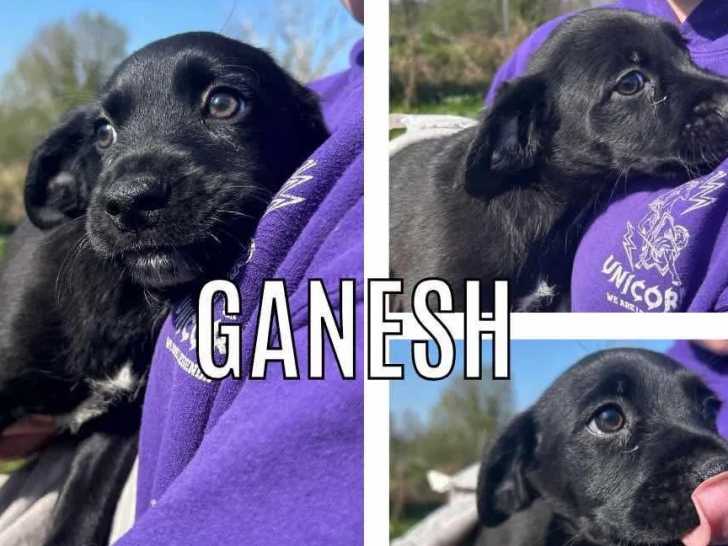 Notre association vous propose à l'adoption Ganesh, un chiot femelle de couleur noire avec marque blanche et âgé de deux mois. Elle attend une famille douce ayant déjà un chien.