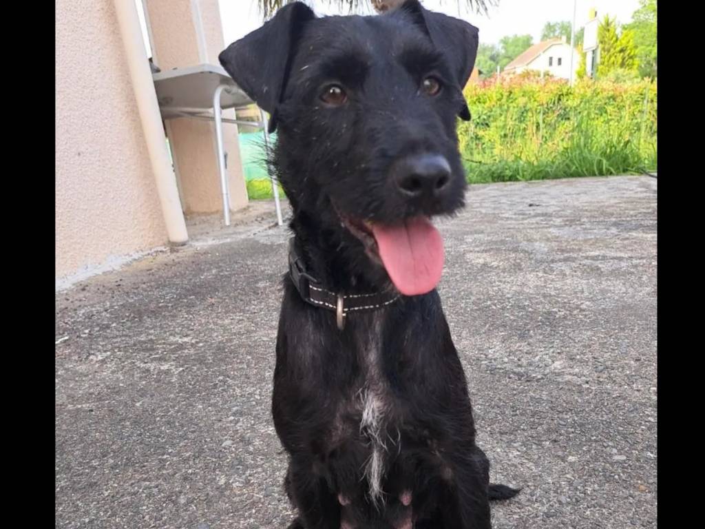 Notre refuge vous propose à l'adoption Panther, une chienne Jagd Terrier de couleur noire âgée de six ans. Elle ne s'entend pas avec les chats, mais se révèle sociable envers ses congénères et les enfants.