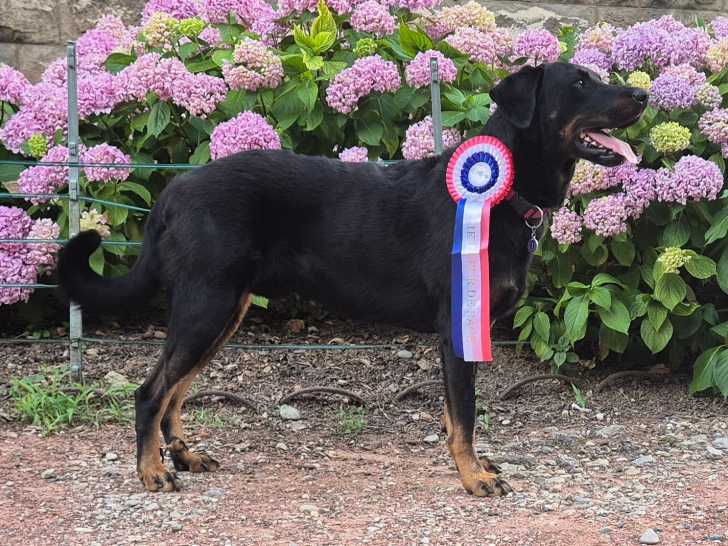 Bien mieux qu’un chien juste inscrit au L.O.F. et confirmé (cotation 1), je suis un Berger de Beauce (Beauceron) né le 4 mai 2021, inscrit au L.O.F. confirmé et surtout cotation 4, obtenue en Nationale d’Elevage (Excellent en caractère et Excellent + en morphologie) ! Il va de soi que je ne suis pas dysplasique, ni des hanches, ni des coudes HD-A et ED-0 (radios de la dysplasie des hanches et des coudes validées par le lecteur officiel du Club des Amis du Beauceron)