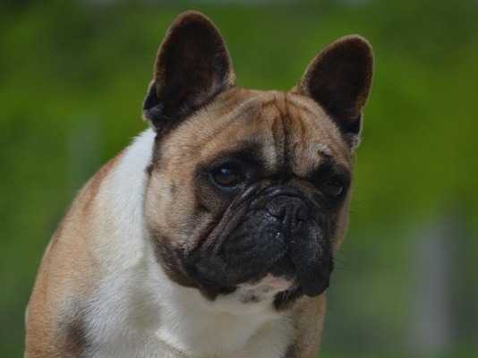 Notre magnifique étalon Bouledogue Français LOF Ne jamais dire jamais du Chevalier Gascon. Il est de robe fauve caille et possède une très belle tête expressive. Il est joyeux et gentil.