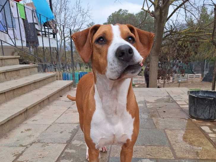 Notre chère Faith a déjà vécu bien des choses au cours de sa courte vie. Elle a été trouvée près d'un terrain de football dans un petit village grec, tout près du refuge pour animaux de Hopeland. Lorsque Natasa, la responsable de Hopeland, l'a trouvée là, complètement terrifiée, il était évident que quelque chose n'allait pas. Il semblerait que Faith ait été abandonnée avec une mâchoire cassée. Lorsque nous l'avons trouvée, sa bouche ne fonctionnait plus : elle ne pouvait ni manger, ni aboyer, ni vivre sans douleur. Heureusement, Faith a été emmenée directement à Hopeland, où elle a reçu les soins médicaux dont elle avait besoin sur-le-champ. Depuis, notre courageuse petite fille a dû parcourir un long chemin. Faith a déjà surmonté tant d'épreuves, mais elle vient de subir sa quatrième opération. Une glande infectée dans sa bouche avait formé une grosseur douloureuse qui a dû être retirée. Si l'opération l'a sauvée, elle a laissé sa bouche tordue, une cicatrice visible de ses combats. Mais Faith ne se laisse pas définir par ses cicatrices. À Hopeland, Faith a déjà surmonté nombre de ses peurs et impressionne tout le monde par sa personnalité douce et joyeuse. Faith est une formidable compagne qui adore les promenades. Elle est un exemple vivant de force et d'amour inconditionnel. C'est une âme bienveillante et joyeuse, rayonnant d'amour et de beauté intérieure. Sa force nous inspire chaque jour.