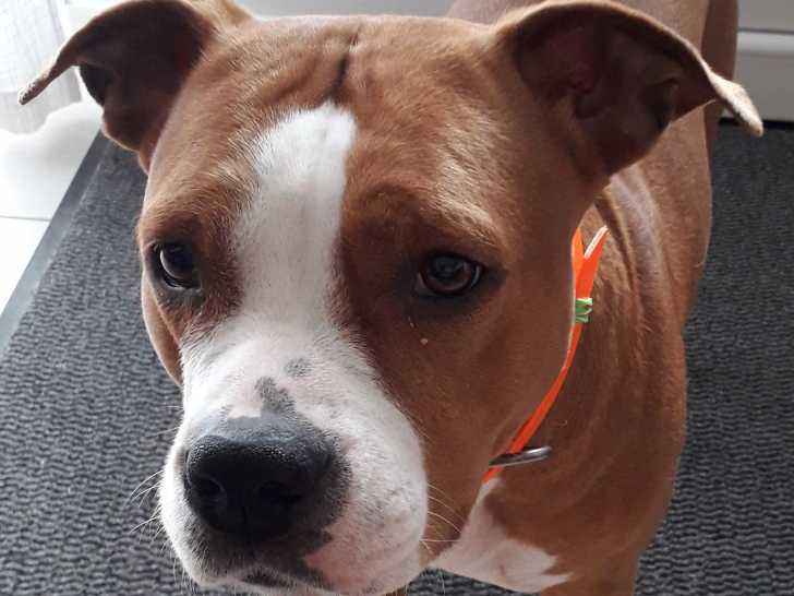 Je m'appelle Nala. Je suis une bonne pâte et une vraie pot de colle. Je suis très curieuse et très joueuse. Je suis décatégorisée (pas besoin de permis de détention ni de muselière), stérilisée, vaccinée et pucée.