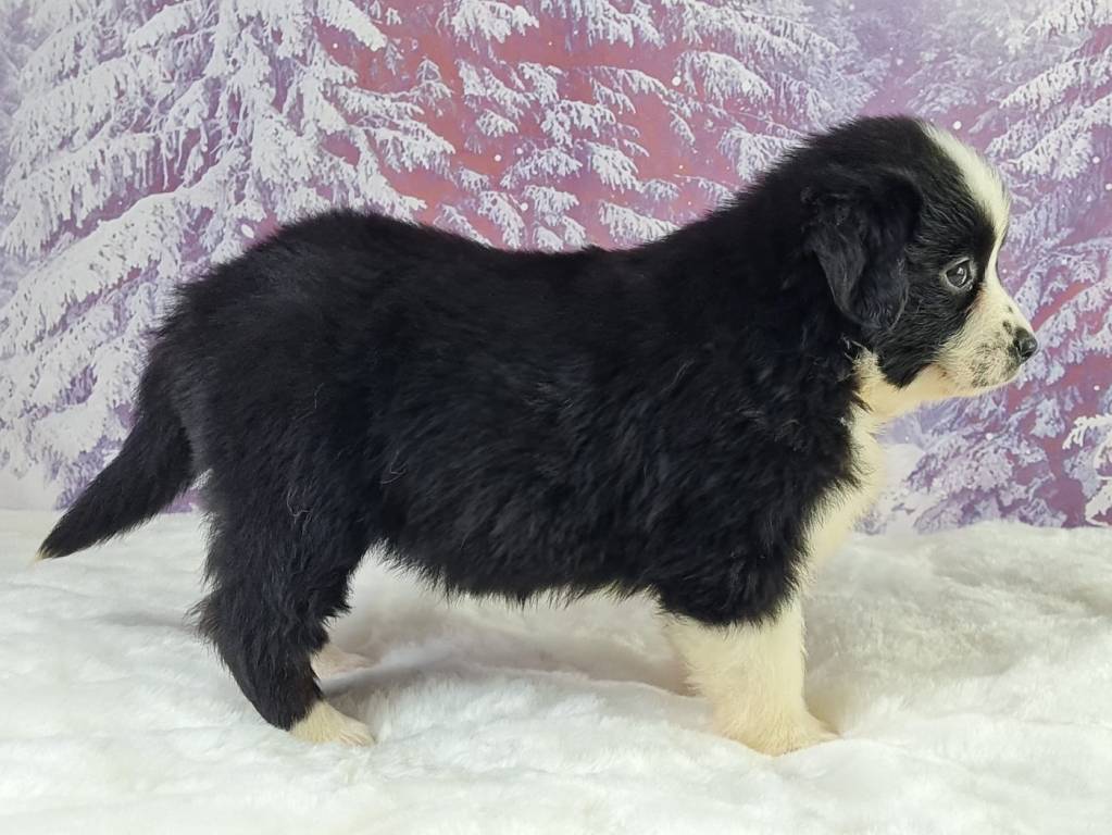 Aïko du mont de la chenaie est un chiot mâle Berger Américain Miniature qui évolue au sein de notre élevage de Saint Denis D'orques. Il est né le 23 décembre 2025 et est déjà inscrit au Livre des Origines...
