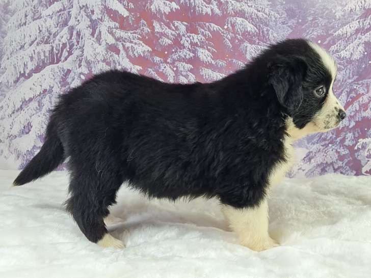 Sur une portée de huit chiots Berger Américain Miniature nés le 26 décembre 2025 à l'élevage de l'Angelarde, nous proposons à la réservation un superbe mâle noir tricolore aux yeux bleus. Inscrit dans le Livre...