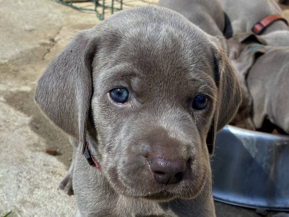 Sur 11 chiots nés au sein de notre élevage Des Guerriers De Gueule, trois femelles Braque de Weimar sont enocre disponibles pour le 14 avril 2026. Ils évoluent librement dans un cadre compatible à leur éveil grâce à toute l'énergie et la curiosité dont ils font preuve. lls sont nés le 14 février 2026, sont à présent pré-inscrits au Livre des Origines Français (LOF).