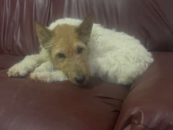 Nous mettons disponible à l'adoption ce chien Fox Terrier poil dur à la fourrure tricolore de trois ans nommé Eliott. Ce dernier ne s’entend pas avec les chats et aura besoin d'un jardin pour une vie heureuse....