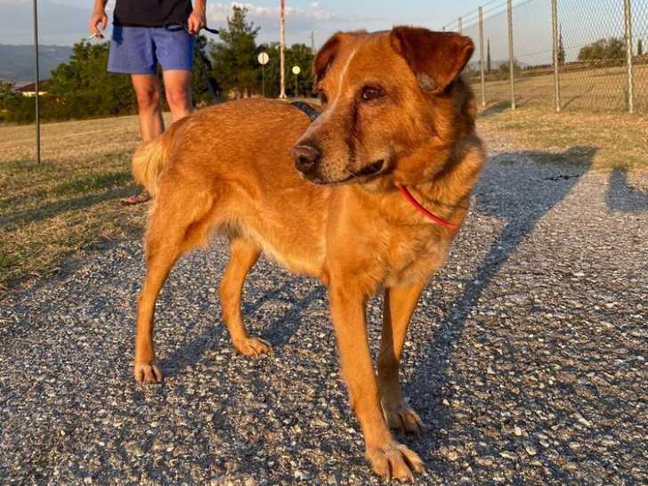 L'adorable Ginger est une chienne sénior qui a été trouvée négligée au milieu des détritus. À son arrivée elle a été diagnostiquée avec la leishmaniose, une maladie commune sur le pourtour méditerranéen, mais elle n'a aujourd'hui plus aucun symptômes, si ce n'est sur les oreilles. Elle doit néanmoins prendre tous les jours son cachet d'Allupruinol.