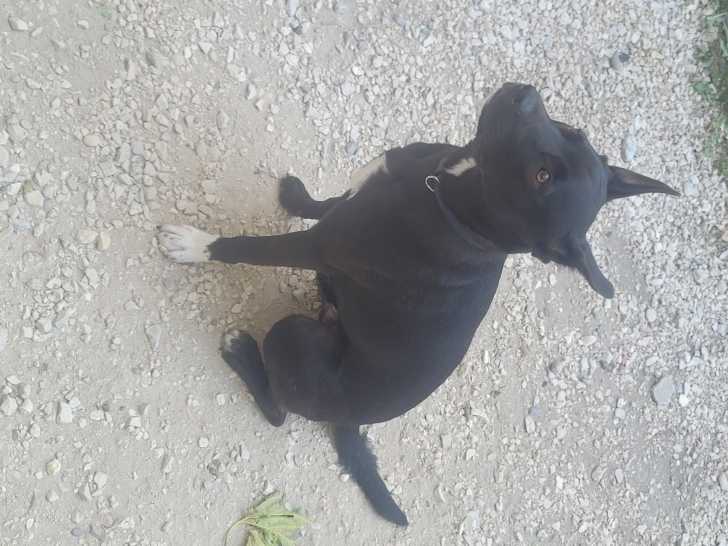 Je précise que le chien est pucé, vacciné et castré. Il tient plus du Malinois que du Staffie.
