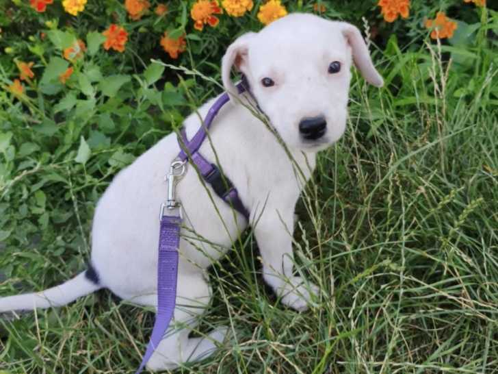 Elle est en cours d'apprentissage, elle marche en laisse, elle fait des balades extérieures. Elle est très sociable avec tout le monde (chiens, chats et enfants). C'est une petite chienne très dynamique et joueuse. ?