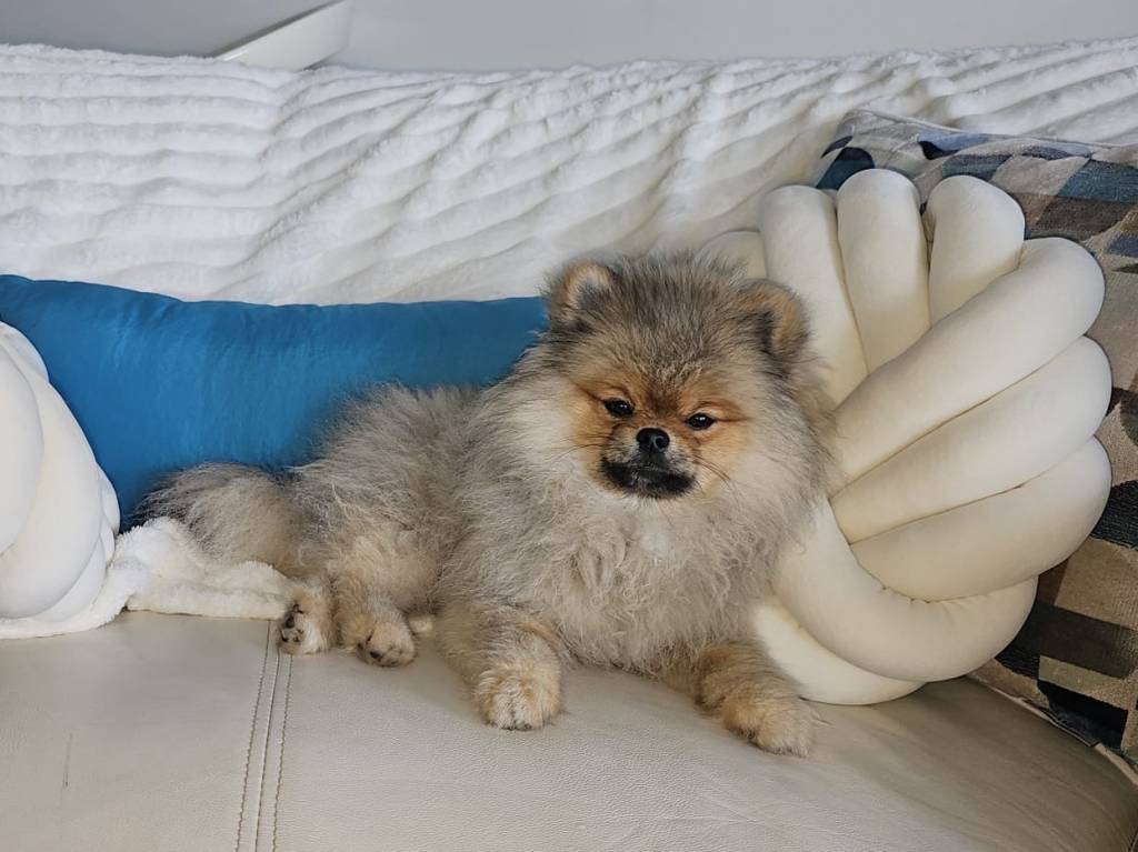 Je vous présente Hulk, magnifique petit mâle Loulou de Poméranie d’un an. Il fait 2,5kg seulement, il déborde d’énergie et d’amour pour ses maitres.