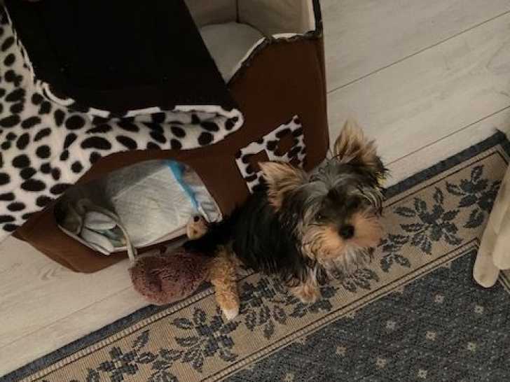 J'ai un très beau petit mâle Yorkshire toy de 18 mois. Il pèse 2,4 kg. C'est un chien câlin et doux.