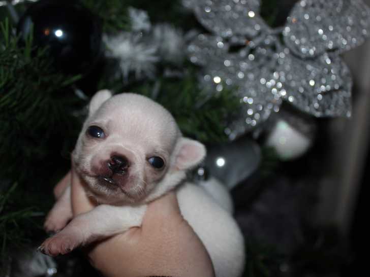 Je propose à la réservation 2 chiots Chihuahuas un de couleur blanche et un de couleur blanche et bleue. Ils sont tous deux à poils courts.