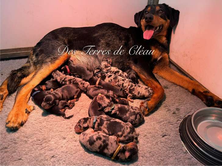 J'ai le plaisir de vous présenter les 15 chiots issus du mariage de Saphira des Terres de Cléau et de Soupson du Royaume de Géane. Ils sont nés le 13 avril dernier.
