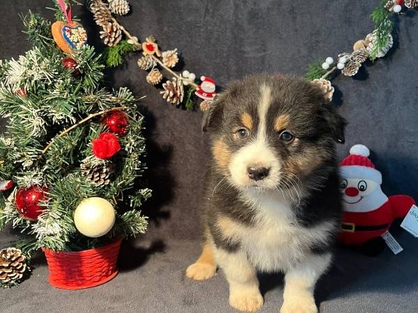 Parmi les chiots mâles, nous avons 1 noir tricolore à la queue longue, 1 bleu merle à la queue longue, 1 rouge tricolore à la queue courte naturelle et 2 rouge tricolore à la queue longue.