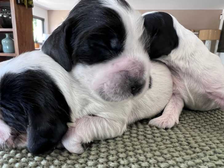Tous mes chiots naissent, grandissent et évoluent dans un environnement qui respecte leurs conditions de vie et leur bien-être. Je suis un programme d'éveil bien spécifique à mon élevage, c'est ma méthode.