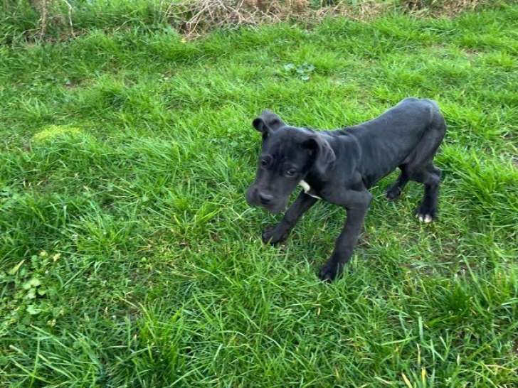 Nous proposons des chiots Dogue Allemand nés le 20 novembre 2025, habitués aux animaux et aux enfants. Il reste 3 femelles noires, 1 femelle bleu arlequin et 1 mâle noir.
