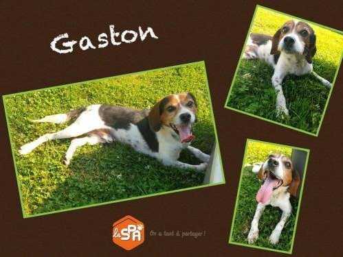 Gaston est un mâle adulte croisé de type Beagle né en 2018. Il est arrivé au refuge par le biais de la fourrière avec son amie Adèle.