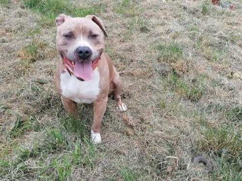 Vikky est une magnifique femelle de 2 ans croisés Staffordshire, non catégorisée, blanc et gris, de 20kg. Elle est en parfaite santé et à jour dans les vaccins. Elle a ses papiers et elle a des contrôles...