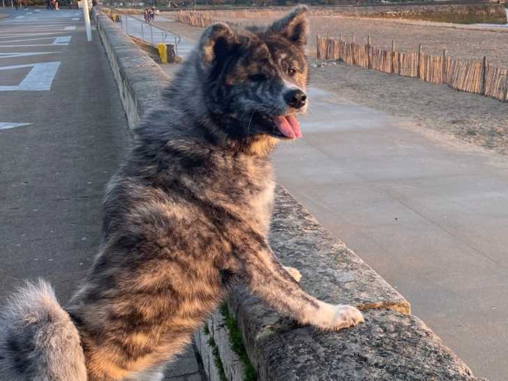 Je vous présente Yoshi, mon Akita Inu bringé de 2 ans, calme, affectueux et très sociable.