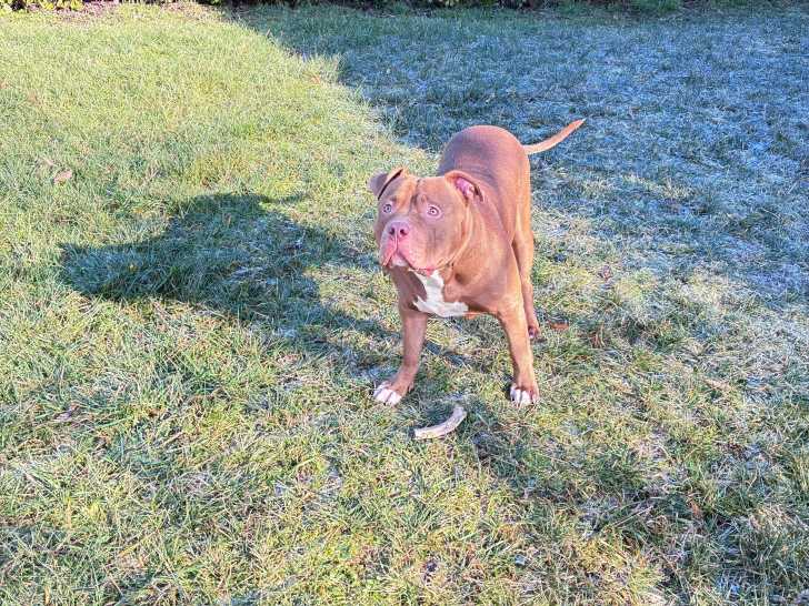 Notre chien a 1 an. Nous recherchons une femelle Amercian Bully pour faire une saillie avec Junior, notre American Bully XL. Il est né le 04/01/2025.