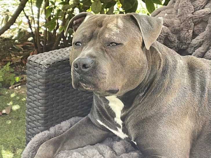 Je vous présente Tooki, mon American Staffordshire Terrier de 6 ans. Il est à droite sur la photo. C'est le frère de Boston et de Fuego. Il est issu d'une lignée de pure race, de couleur bleue. Je...