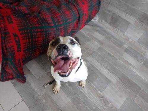C’est avec plaisir que nous vous proposons à l'adoption cette chienne Staffordshire Américain Terrier au pelage bleu et blanc de cinq ans nommée Chanel. Non compatible avec ses congénères femelles, elle attend...