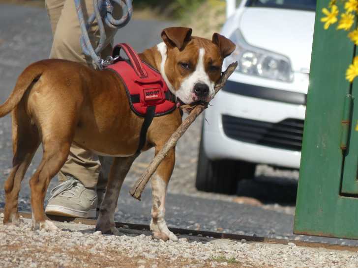 Olaf est un beau chien American Staffordshire Terrier marron et blanc né en 2018. Il a été abandonné. C’est un chien gentil qui apprécie la compagnie de femelles, mais nous ne savons pas s’il s’entend avec les mâles et les chats. C’est un gourmand et un grand joueur.