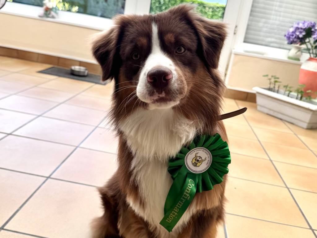 Je propose mon chien Volt pour saillie. C’est un magnifique Berger Américain LOF de 1 an et demi, à la robe rouge tricolore. 🐶