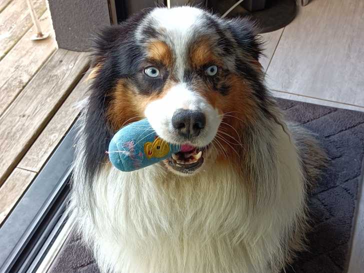 Shadow est un Berger Australien bleu merle aux yeux bleus disponible pour saillie.