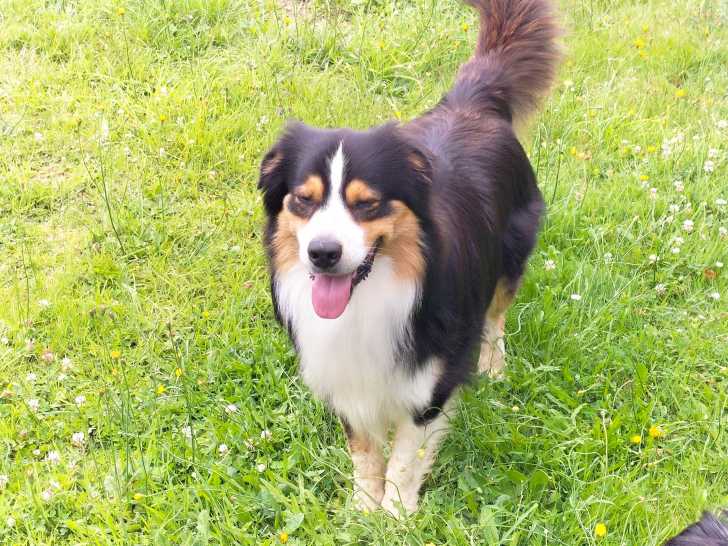Twix est un Berger Australien tricolore très calme. Ses tests ont été effectués, seul le MDR1 est +/-. Les hanches ont le résulat B. Il est indemne de dysplasie des coudes, et de MHOc également (test en janvier 2025). Il a le poil plat.