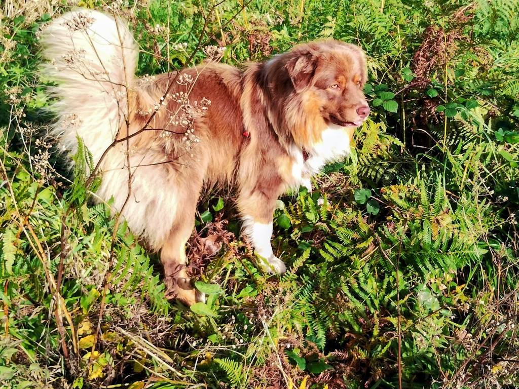 Tam du Royaume de Galadriel est un Berger Australien rouge tricolore de 31 kg. Il a un beau gabarit fuselé. Il est de couleur marron fauve avec des traces limitées de panachure blanche. Il est né le 14 novembre 2022.