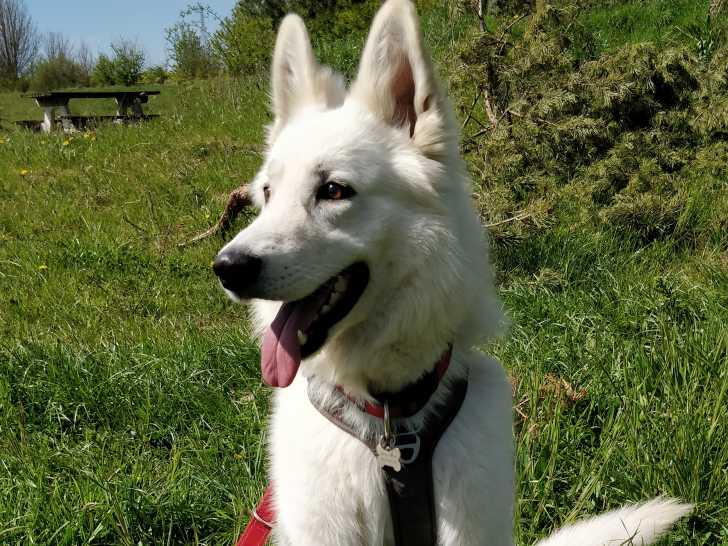River est un magnifique mâle Berger Blanc Suisse de 4 ans, inscrit au LOF et confirmé, issu de l'élevage renommé des Flancs de Guadeloupe. C'est un chien très intelligent et sociable, tant avec les autres...