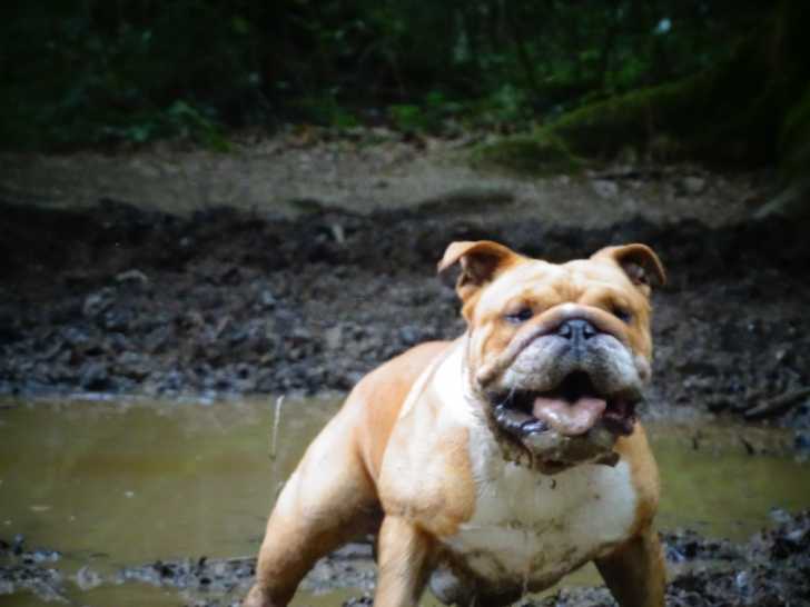Nous proposons notre magnifique chien Bouledogue Anglais nommé Tikiez pour saillie. Il est de pure race, car il est inscrit au Livre des Origines Français (LOF) et il est confirmé. Il est né le 2 mars 2022. Il pèse 27 kg.