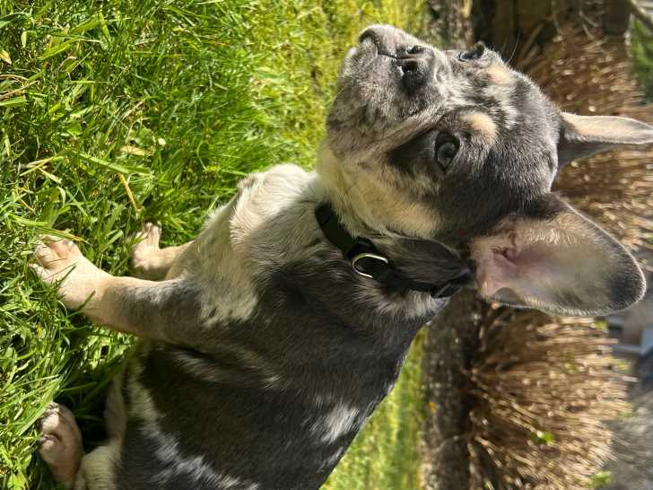 Pablo est un Bouledogue Français non inscrit au LOF, car il est de couleur exotique.