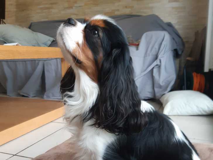 Mon adorable chien cavalier king charles tricolore de 2 ans, Ulysse de la voie de Mandalore, cherche une femelle pour saillie.