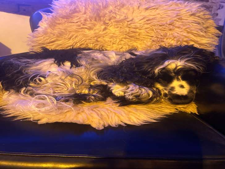 Notre Cocker est de couleur bleu rouan. Il est très gentil et n'a aucun souci de santé. Il est de taille moyenne. Il s'appelle Ramones.