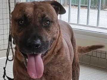 Lemmy est grand chien marron croisé Cane Corso. Il est né en 2016 et a rejoint notre refuge le 12 juillet 2021. C’est un chien très gentil avec l’humain, qui s’entend bien avec ses congénères femelles, mais pas avec les chats.