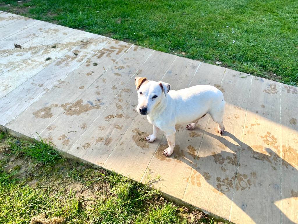 Je vous présente Jivara, un Jack Russell Terrier blanc.