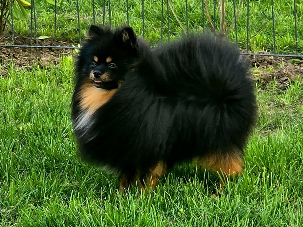 Je propose mon Spitz de toute petite taille avec une fourrure bien garnie, pour saillie. Il est de couleur noir et feu.