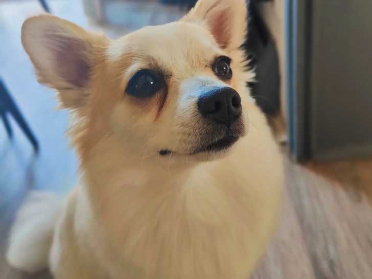 Tao est un Pomchi âgé de 1 an et demi. Il est adorable, câlin, drôle et intelligent. Il est de couleur blanc et marron.