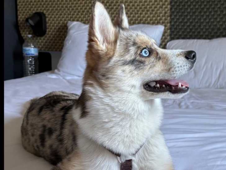 Nous souhaitons proposer notre Pomsky (F3) à des éleveurs pour faire des saillies. Il fait 14,5kg. Il est de couleur merle chocolat, il est magnifique et reçoit énormément de compliments dans la rue.