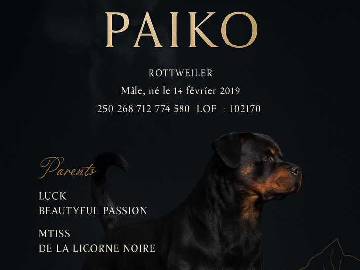 Paiko est prêt à transmettre ses qualités exceptionnelles à une future génération de chiots équilibrés et bien typés.