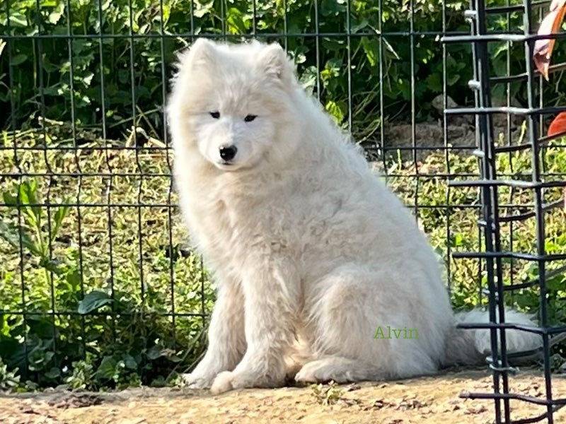 Nous proposons Alvin, un magnifique mâle Samoyède, né le 13 octobre 2025, qui cherche sa famille pour la vie. Joueur, affectueux et déjà très proche de l’humain, il adore les moments câlins, il est calme et écoute déjà très bien, et il est inscrit dans le Livre des Origines Français (LOF).