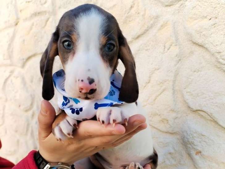 Notre élevage naisseur vous propose un magnifique chiot Teckel mâle né le 1er janvier 2026, à la robe piebald de couleur exotique, pour 2 000 euros. Disponible immédiatement, il est identifié par puce, vermifugé et vacciné selon son âge.