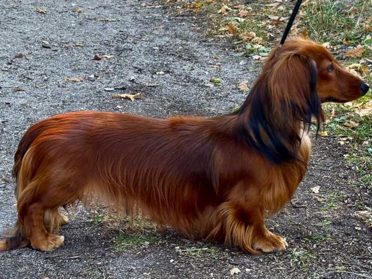 Je vous présente Vegas (Very Nice Dream dit Vegas de la Cité des Mauraudeurs), un Teckel Nain à poil long fauve charbonné, inscrit et confirmé au LOF, qui évolue très joliment en expositions de beauté (nationale et internationale). 🏆