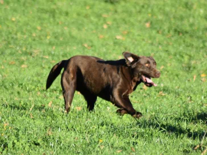Les chiens Labrador de notre élevage sont proposés à la vente suite à un arrêt total. Sandy Sokett Minich de la Pointe, née le 17 septembre 2021, est une femelle chocolat porteur jaune.